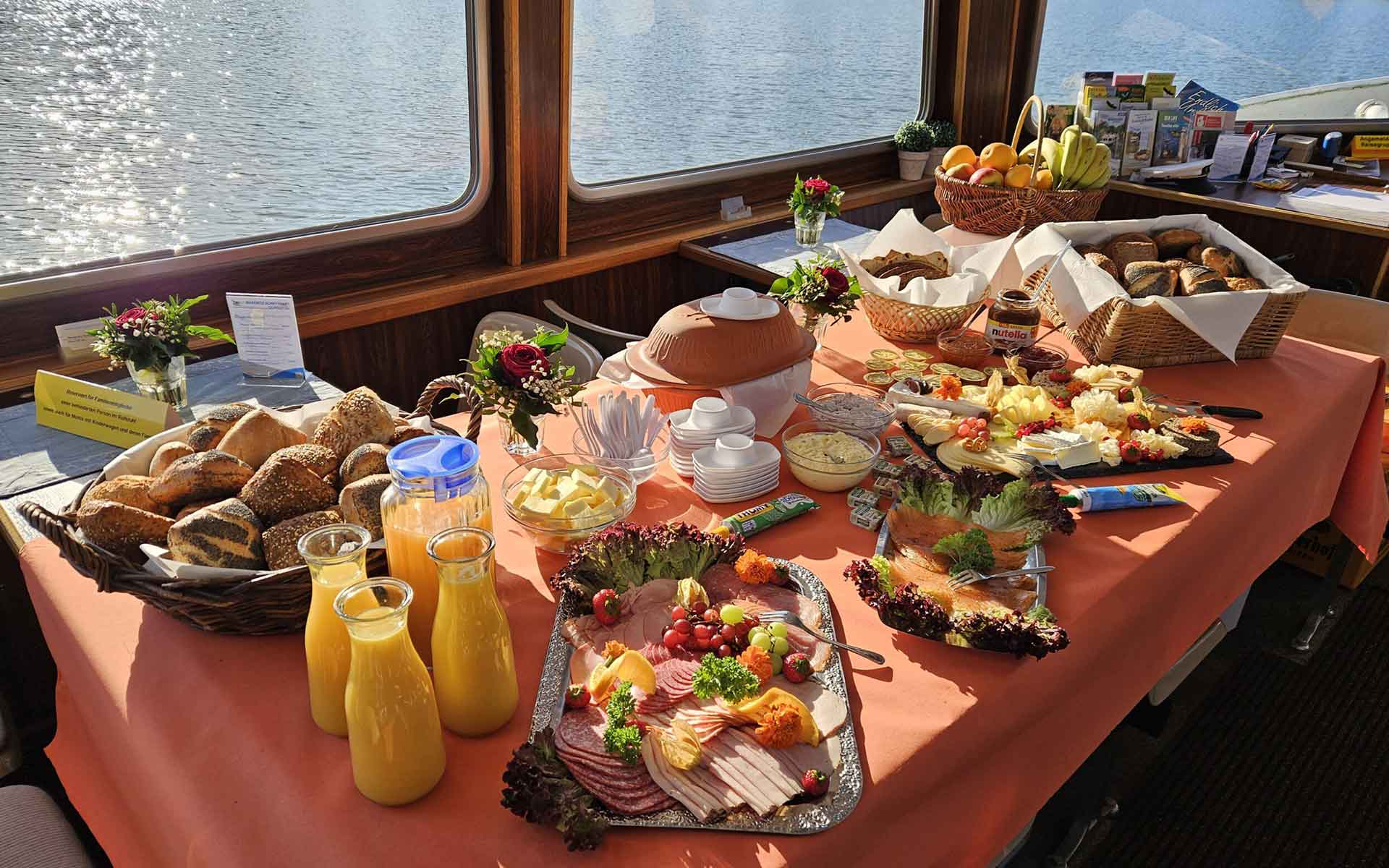 Tauchen Sie in eine kulinarische Reise auf der Wakenitz ein! Beginnen Sie Ihren Tag mit einem reichhaltigen Frühstück, das direkt bei uns an Bord auf dem Wasser serviert wird. Von frischen Brötchen über duftenden Kaffee bis hin zu einer vielfältigen Auswahl an Aufstrichen und Belägen – unser Frühstücksangebot lässt keine Wünsche offen. Nach dem Frühstück kann es auch schon weitergehen mit unserem Snack- und Tortenangebot, das täglich variiert.